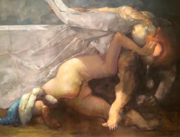 I liked the recurring theme in her works of motherhood: there were several images of pregnant bellies and mothers holding babies. But though I’ve said Tanning’s work can tend towards the sweet, there was an underlying ambivalence about the psychological presence of these characters, about the state of maternity itself. You weren’t sure whether the mother was protecting or endangering the child, whether she was a moment away from abandoning it or destroying it. Who is trapped and who will escape? Obviously Tanning was childless but interestingly her reflections on this theme don’t seem to have much to do with a personal desire to be/not be a mother, but maybe more about creative output in general. Being an artist can be kind of like being a parent, at different moments your work can drain you and give you life.
