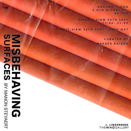 - Installation view of ‘Misbehaving Surfaces’ by Manon Steyaert and the Who Gallery, London. Photo credit: Pippa Brabyn