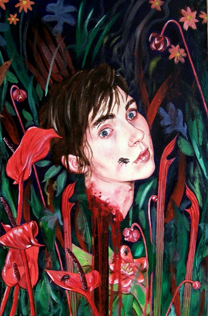 So the image of a severed head, for me and my work, rotates around combinations of ancient mythology, European history, and contemporary attitudes. The modern operatic interpretations of Oscar Wilde’s play Salomé by Richard Strauss, most recently at the National Opera House in London in 2012, give a brand new photographic source of the grim and gorgeous images of the necrophiliac, bloody conclusions of the Aesthetic and provocative Wilde play. It is one thing enjoying Aubrey Beardsley’s beautiful Art Nouveau illustrations but seeing the scenes acted out with high production values is even more exciting. I would like to make a severed head like the one created as a prop by the National Opera. I will work it out eventually. It looks so good. The story of Salome and St John the Baptist, as re-imagined by Wilde and Strauss, is a rape fantasy at its core, but one underpinned with female sexuality for an extra layer of perversity; control and ownership, visceral and insane.
