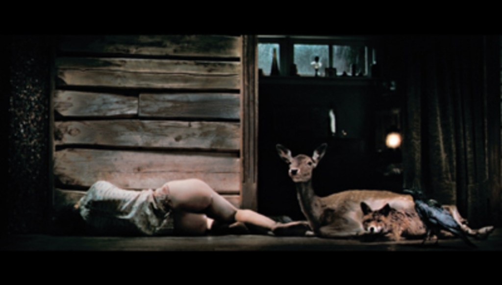 Antichrist did not cross any gendered binary lines; other than weakening Willem physically (by aforementioned millstone to the leg), but then giving him crazy feats of strength such as dragging himself up and down a hill with no food or water while bleeding out … this plot device served to turn him into a superhero fighting against the evil woman in the final scenes of the film; he also had divine guidance in terms of the Three Beggars, one of which (the crow) showed him where the wrench was hidden so he could retrieve it, thereby freeing himself and somehow then having the strength to strangle Charlotte who didn’t put up much of a fight. This is either because she wanted him to kill her or she had no strength left which are both inherently misogynistic propositions. If she wanted to, she could have killed herself easily (I mean she did cut off her own clitoris, which only a certain kind of man would ever, ever write and also could be unpacked further), and if she managed to screw a millstone into her partner’s leg, dig him out of a foxhole and then drag him up a hill back to the cabin, she is not lacking in strength. If one of these Charlottes is supernatural, then both are. That’s the real (unfortunate, because there’s so many great things in Antichrist) misogyny in this film, the unbalanced and erratic sources of strength and weakness for the two main characters.