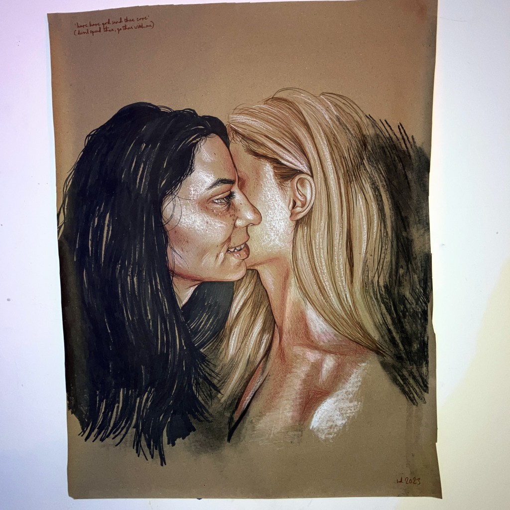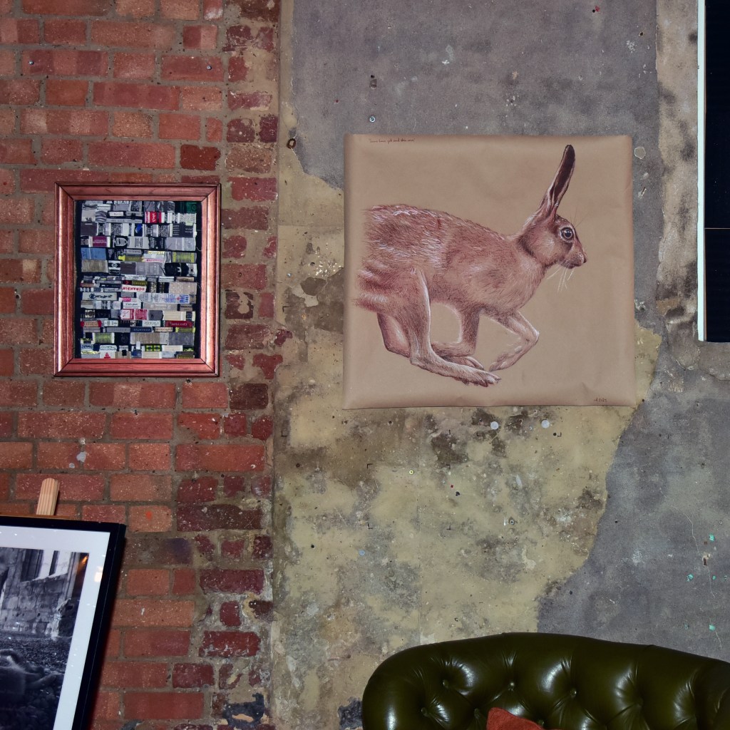 We had visited the Metre Squared space in West Kensington for a show back in May, where a few friends, people we knew from our MA at Chelsea, had organised a group exhibition of about 12 artists (one of these artists was Dedeia, so she unfortunately ended up exhibiting in the same place twice in one year). Upon entering I was immediately attracted by the interesting texture of the space, the fact it was artist-run and not for profit, and the projection room behind a bookcase in the main event space that was perfect for film reels; when we did the first show in Germany I had a hankering to show my ‘Oh Ill Thief’ film alongside the drawings as they were a different manifestation of the same project. However this didn’t end up working out as the old work was less urgent to show than the residency work, and my artist colleagues had made new film works and projections that took primacy. But when we had the chance to do this second show, the potential of the projection room meaning I could properly show the 2019 film alongside the new drawings put the Metre Squared space at the top of our venue list.